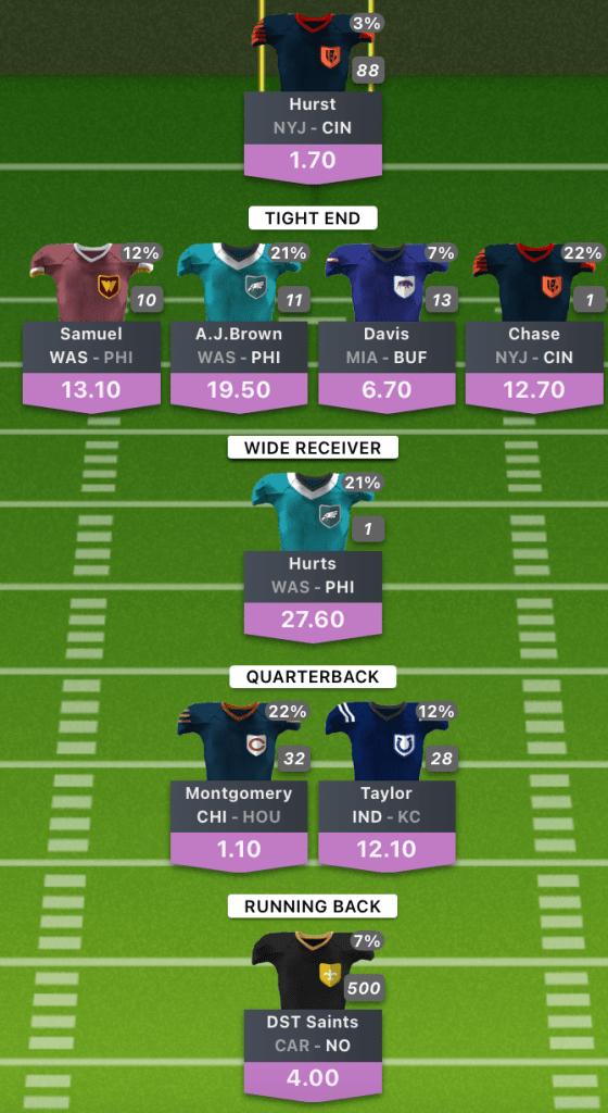 This line-up BOMBED, the Eagles stack of Jalen Hurts and A.J. Brown was just about the only part of the line-up that went to plan.