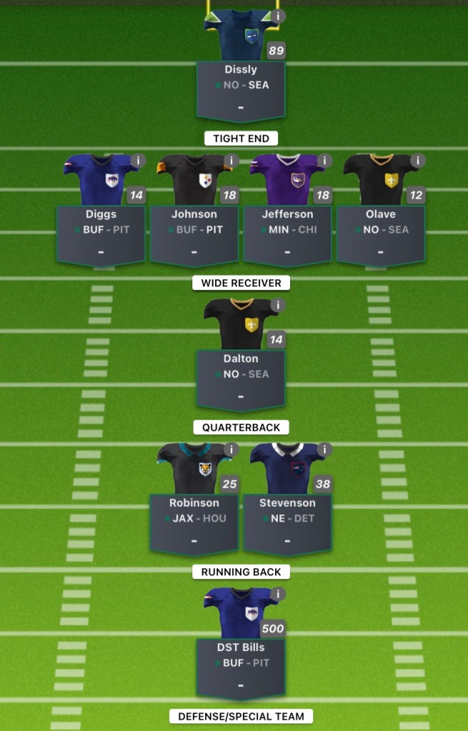 I’ve also gone for a big chunk of the Bills-Steelers game with Stefan Diggs, Diontae Johnson and the Bills defense. Diggs speaks for himself, he’s an elite receiver playing with one of the best QBs in the league. Johnson should see plenty of targets with the Steelers likely to be behind much of the game.