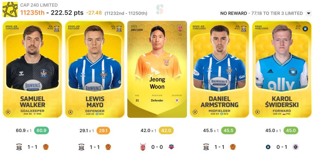 If you haven’t signed up to Sorare and fancy giving it a go, sign up via this referral link and earn a free limited card when you collect five cards via New Card Auctions.