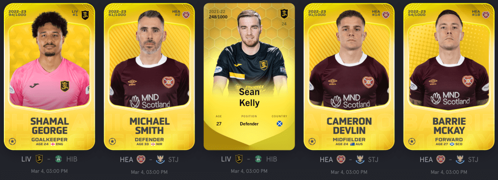 Sean Kelly*, Livingston – If Livingston can keep a clean sheet against Hibs, then Sean Kelly should be a good bet to outscore his L15 of 43. Despite having defender cards on Sorare, Kelly operates in the centre of midfield giving a path to add some more attacking actions than most defenders. He can chip in with the odd decisive as well, having scored two and created two this season.