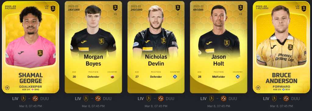 With Rangers not having Sorare cards, there’s just 5 goalkeepers to pick from in the Premiership. Livingston’s Shamal George* is the clear pick of the bunch hosting a Dundee United side that has scored just 11 goals on the road this season. But there are some concerns, he suffered a thumb injury in the closing minutes of Saturday’s game and there has been no news as of yet. Manager, David Martindale discussed some other injuries in Monday’s press conference but I can’t find any update on the keeper.