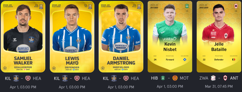 Rangers-Dundee United This one should be a cakewalk for Rangers, at home against the worst team in the league. The only downside is there aren’t a lot of Rangers players with cards on Sorare. It goes without saying that Dundee United cards should be avoided across the board this week.