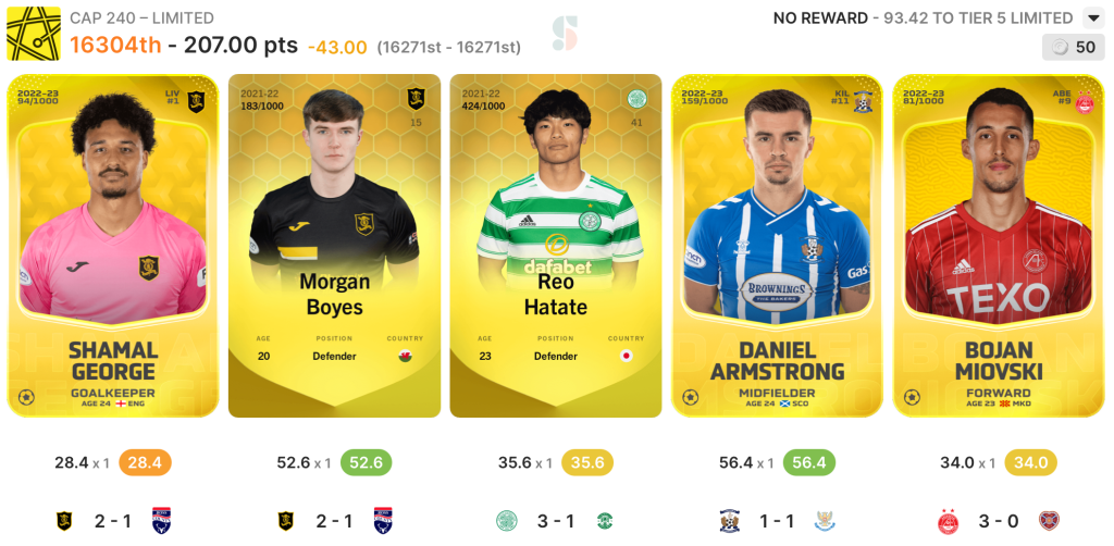 If you haven’t signed up to Sorare and fancy giving it a go, sign up via this referral link and earn a free limited card when you collect five cards via New Card Auctions.