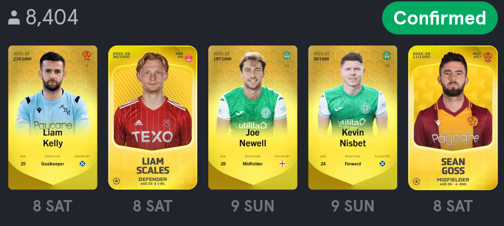 Other Thoughts: Robert Snodgrass should be a decent value for Hearts, although he doesn’t have any limited cards available. Joe Newell* wasn’t great for Sorare in his return to action last week, but against Dundee United he should get some chances to score big.