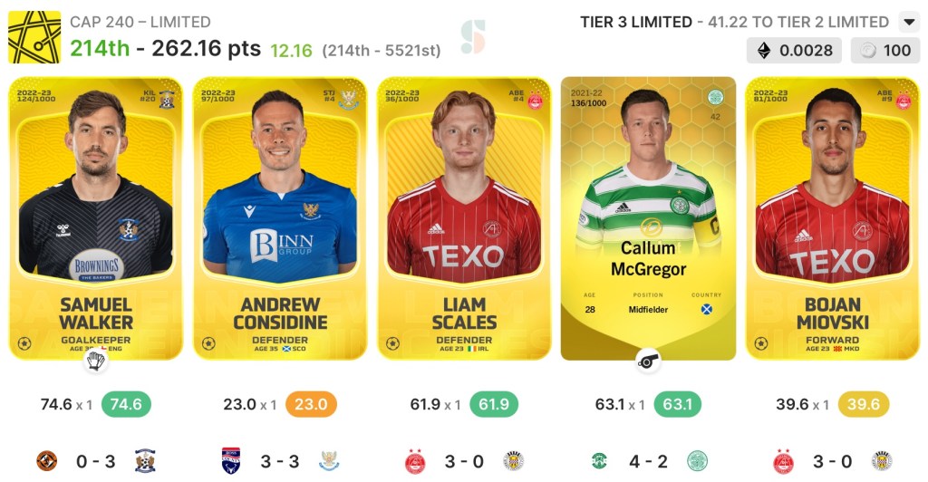The rotation proof Callum McGregor had a solid game for Celtic and grabbed an assist to take us over the 250 point mark. I was hoping for a bit more AA from him, but given Celtic conceded four I can’t complain too much with a positive AA!