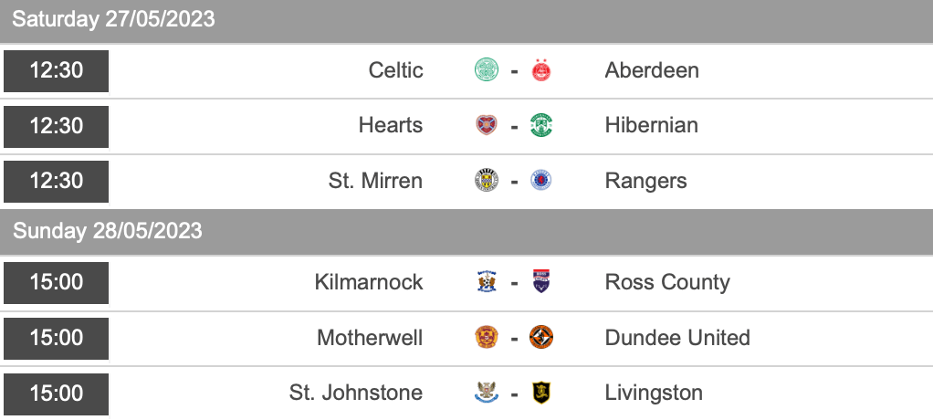The final games of the Scottish Premiership season are upon us with the games split across Saturday and Sunday. On Saturday lunchtime the top 6 play their final games. The only thing left to be decided is who will finished 4th, Hearts or Hibs, as the two sides face off in the final Edinburgh derby of the season.