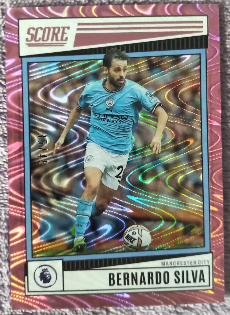 In the fifth and final pack, I opened this #/45 Bernardo Silva pink swirl parallel. As a key part of Man City’s treble winning team and with him potentially moving on this summer he’s a really fun card to get! The swirl effect is a pretty cool variant, whilst keeping the overall clean card design.