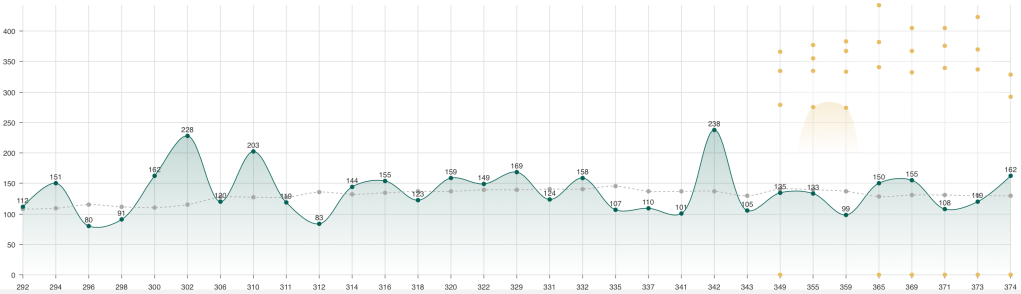 On average we need to score 273 points to win a card in Cap 220 Rare and with one exception a score of 280 points would be enough to guarantee a reward. In terms of winning Cap 220, there’s a lot more variation in scores. On average we need 394 points to win Cap 220, but it has required as much as 442.7 points to take home the trophy.