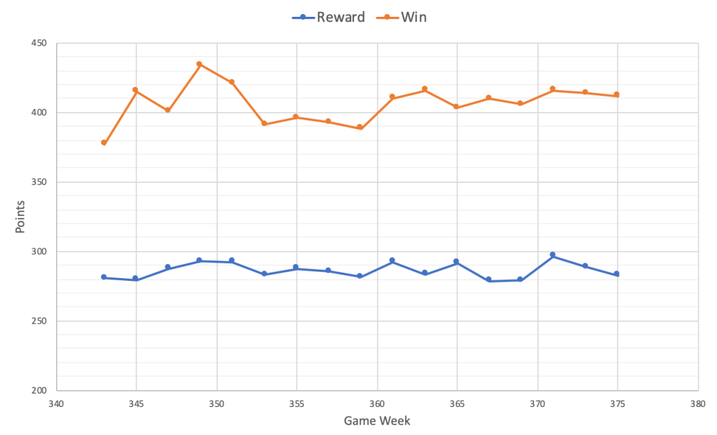 In terms of winning the entire tournament, we would need to have scored over 400 points in 12 of 17 game weeks. In other words, to average a raw 80+ points per player. Obviously, expecting to manage this in any game week is very optimistic!