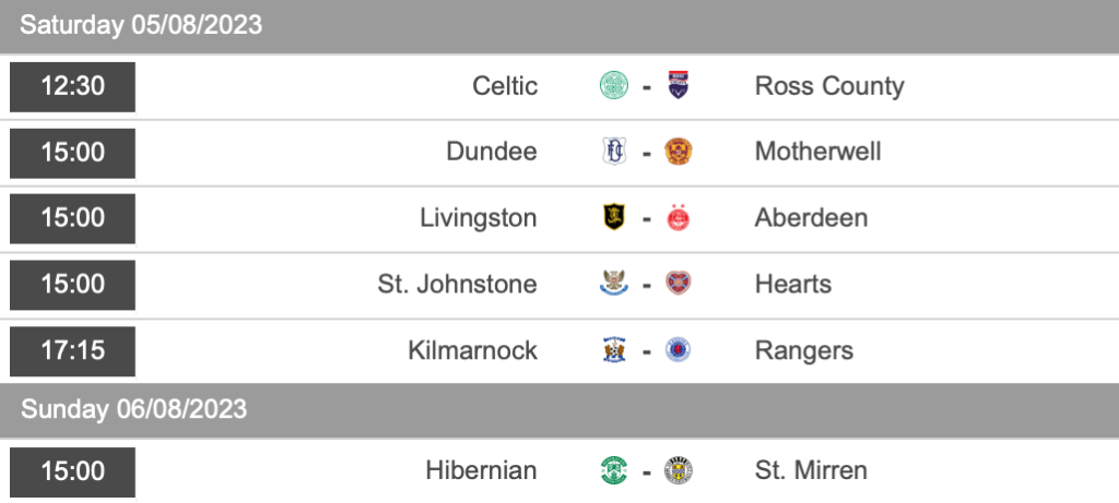 Celtic-Ross County The season gets underway at Celtic Park on Saturday lunch time as the reigning champions host Ross County. Celtic brought back ex-manager Brendan Rodgers after Ange Postecoglu moved to Spurs. He hasn’t made sweeping changes to the squad and we should see a similar tactical set-up this season.