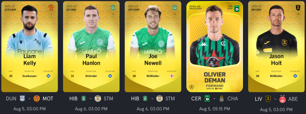 Other Thoughts: Joe Newell* is usually a pretty strong option for Hibs playing at home. When Livingston’s Jason Holt* starts he’s a good bet for a positive score and he should do this week. His teammate, Stephen Kelly, is also worth a look. Beni Baningime* looks set to return from a knee injury that cost him all of last season, in the 2021/22 season he was an excellent scorer on Sorare.