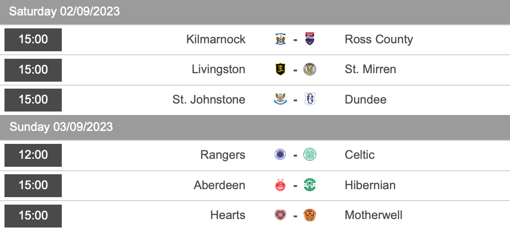 Rangers-Celtic The first Old Firm derby of the season takes place on Sunday. Both sides have had some off performances already and Celtic in particular look a shadow of last season’s side. With the game taking place at Ibrox, that would seem to give the advantage to Rangers. But, with a huge European game taking place this midweek there may be some tired legs. In a derby like this it could alway go either way, but I think there will be goals for both sides and would lean towards a Rangers win than a Celtic one.