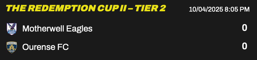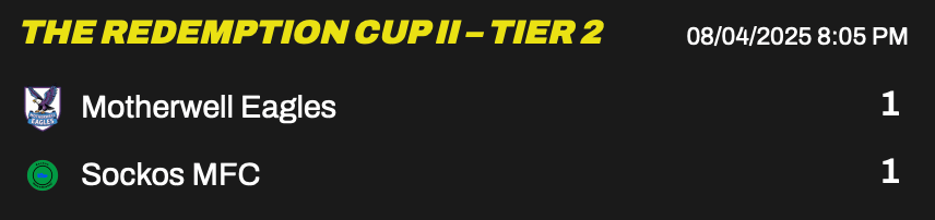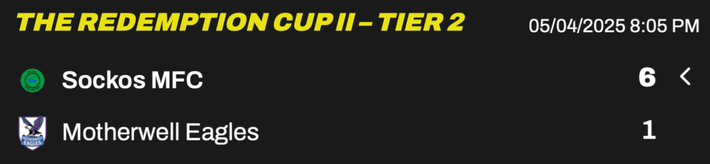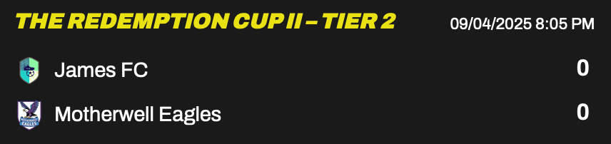 Previously, I have posted about how I’ve built my Motherwell Eagles squad which you can read here. In this post, I’m going to talk through my experience in the Redemption Cup including my thinking on tactics in each game. At the end I’ll sum up my experience and what lessons I’ll be taking into Season 5.