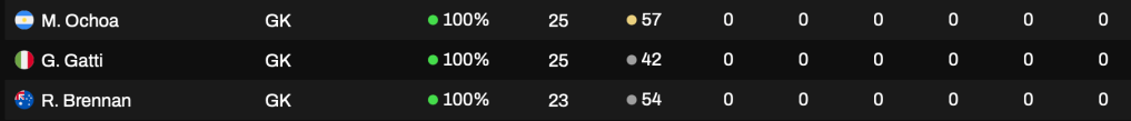 Goalkeepers – Ochoa is the starter and should be pretty solid for us. I did look at loaning Rex Brennan out if I could get a starting spot for him, but I’m going to keep him as the back-up and hopefully get him a few games over the course of the season. Gatti makes the squad because I have spaces, he won’t play but maybe he can progress a bit in training.