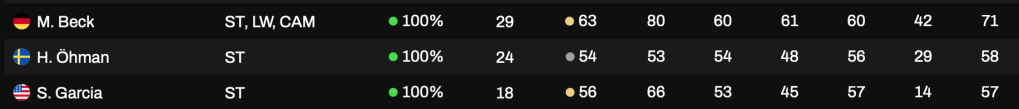 Star player Martin Beck is the pick of the forwards and will be the first choice to lead the line in single forward formations. 18 year old Shane Garcia will partner him when we play two striker formation, that will be the norm to get Garcia as much game time as possible. Henrik Ohman, is the backup and should get 15 games this season. He hasn’t progressed yet despite having 20 appearances for the Eagles so far.
