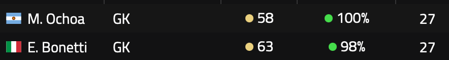 I’ve kept Mariano Ochoa in the squad as the back-up. It’s a bit of a change from previous years, where I’ve picked a much worse back-up than the starter who don’t mind a lack of progression on. Ochoa, hasn’t done much progressing so far and I’m really wanting to have a better line-up when I rotate, so I’m going to accept progression is going to be slowed a fair bit for Ochoa going forward.