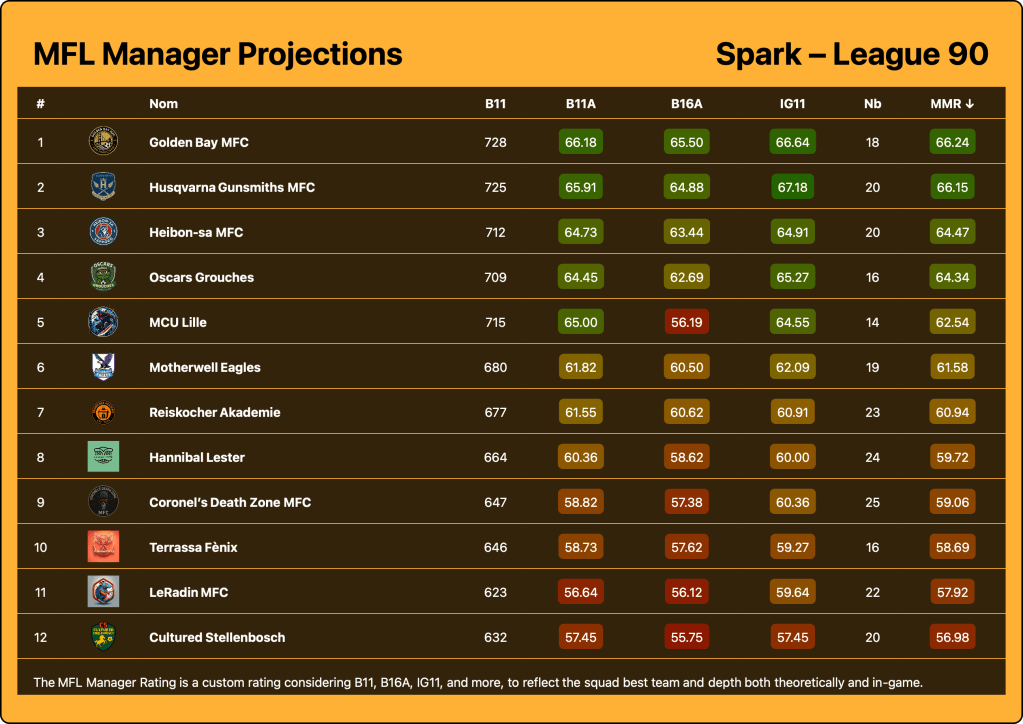 There’s been a lot of talk in the community of power creep over the last few weeks. That’s true for the top end of the Spark 90 league, but in the mid-table is looking bit weaker than last season with one day to go until the season starts. I’ve improved the Eagles a bit over the off-season, but we would have only been good enough for 8th in the projections rather than 6th this season.