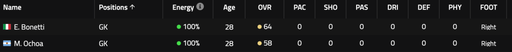 There’s no change in the goalkeepers this season. Ettore Bonetti returns as the starter and will be backed-up by Mariano Ochoa. Bonetti has been in tier-jail since the middle of last season, hopefully he can make the jump to an uncommon early on this year!